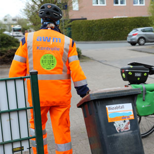 Aktion Biotonne Münster: Informationen über die Wichtigkeit der Sammlung von wertvollem Bioabfall und das Bioabfall nicht in Plastiktüten, oder Bio-Plastiktüten in der Biotonne entsorgt werden darf.
