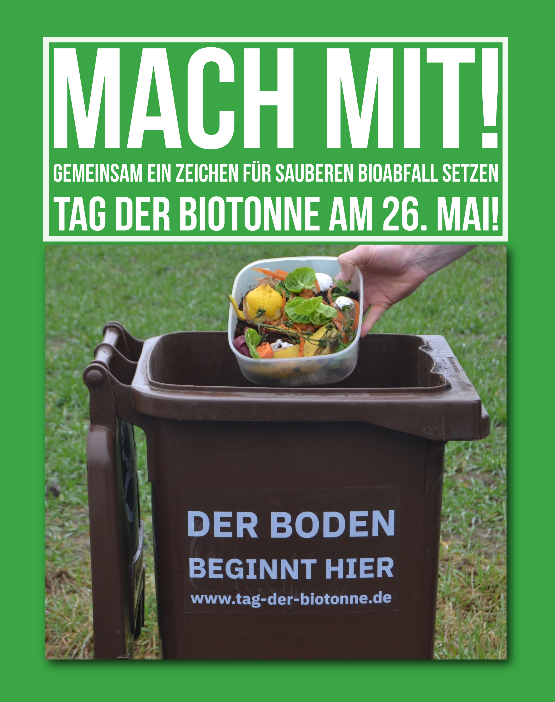 Sollten Sie Veröffentlichungen anderer Akteure zum Tag der Biotonne erhalten, freuen wir uns zum Zwecke der Dokumentation über einen kurzen Hinweis oder ein Belegexemplar an info@tag-der-biotonne.de.